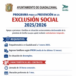 EL AYUNTAMIENTO DE GUADALCANAL PONE EN MARCHA EL PROGRAMA PARA LA PREVENCIÓN DE LA EXCLUSIÓN SOCIAL 2025/2026