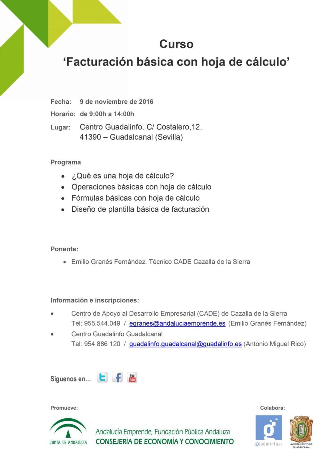 Tel: 954 886 120 / guadalinfo.guadalcanal@guadalinfo.es (Antonio Miguel Rico)